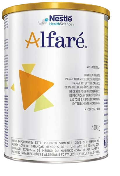Alfaré é uma fórmula infantil para lactentes e de seguimento para lactentes e crianças de primeira infância destinada a necessidades dietoterápicas específicas com restrição de lactose e à base de proteína extensamente hidrolisada. Para lactentes e crianças de primeira infância, de 0 a 36 meses de idade, com alergia às proteínas intactas do leite de vaca e soja, com comprometimento do trato gastrintestinal e/ou com restrição à lactose.