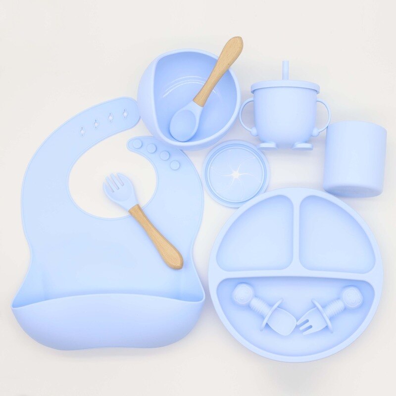 O Conjunto Alimentação Infantil de Silicone Amore Mio (9 peças) vem com tudo o que você precisa para ter uma hora do papá muito mais tranquila e divertida. Todos os acessórios são feitos com silicone de grau alimentício de alta qualidade, livre de BPA e outras substâncias tóxicas.