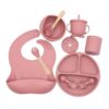 Você irá amar o Kit Amore Mio por ser completo, muito bonito e traz todas as vantagens das peças de silicone: fáceis de limpar, guardar e super seguras para o seu bebê.