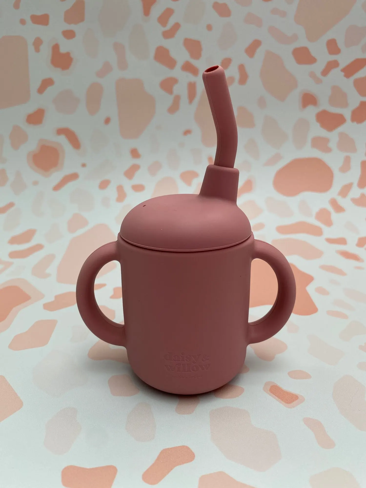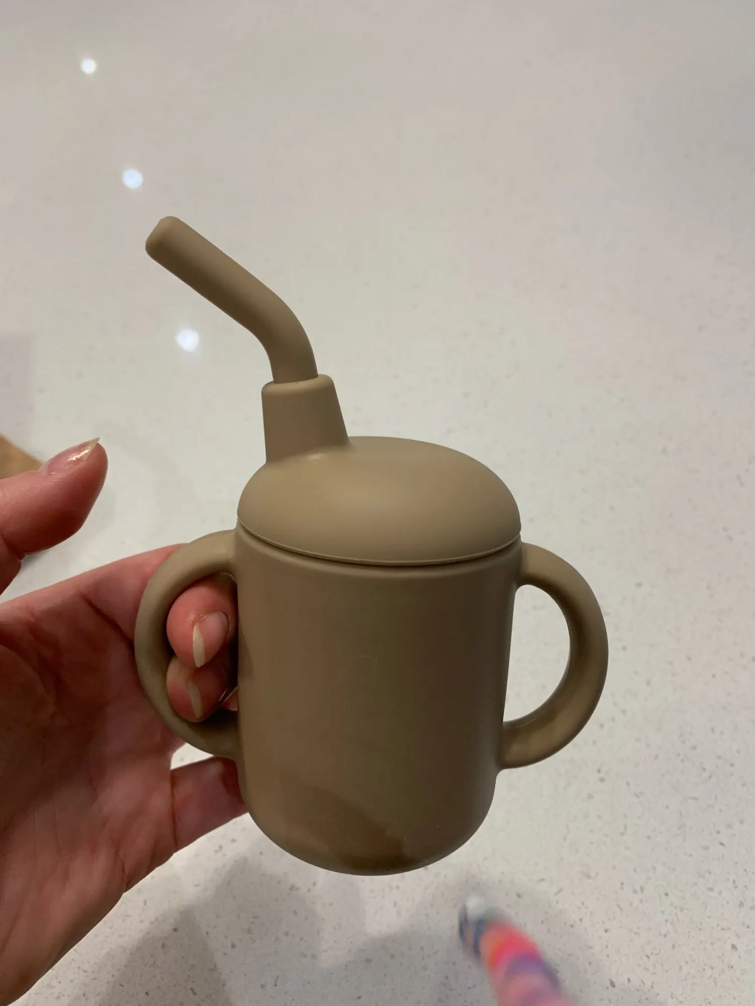 Este copo de silicone tem um canudo dobrado, que pode ajudar as crianças a beber água e evitar que a água vaze e derrube o copo.