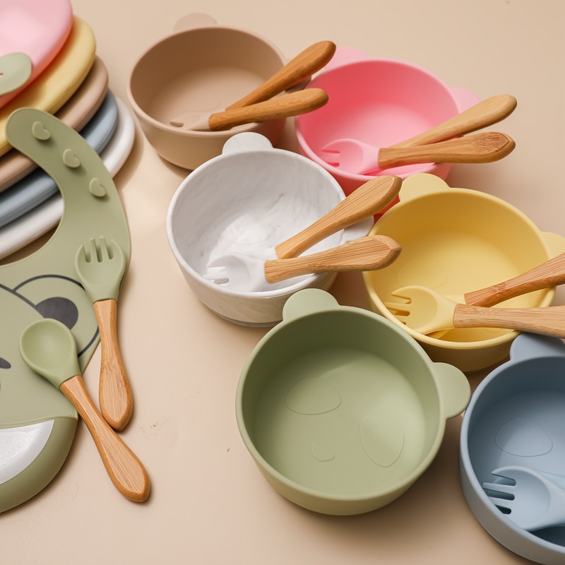 O lindo Kit Alimentação para Bebê Super Panda (4 peças) proporcionará uma refeição muito mais alegre e segura. O Kit Alimentação de Bebê é composto por um babador de silicone, 1 (uma) tigela de silicone com ventosa de sucção e 2 talheres (colher e garfo) com cabo de madeira.