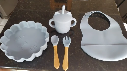 Kit Alimentação Infantil produzido com material 100% seguro (livre de BPA e outras substâncias nocivas à saúde do bebê), é leve, flexível e fácil de limpar.