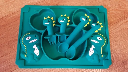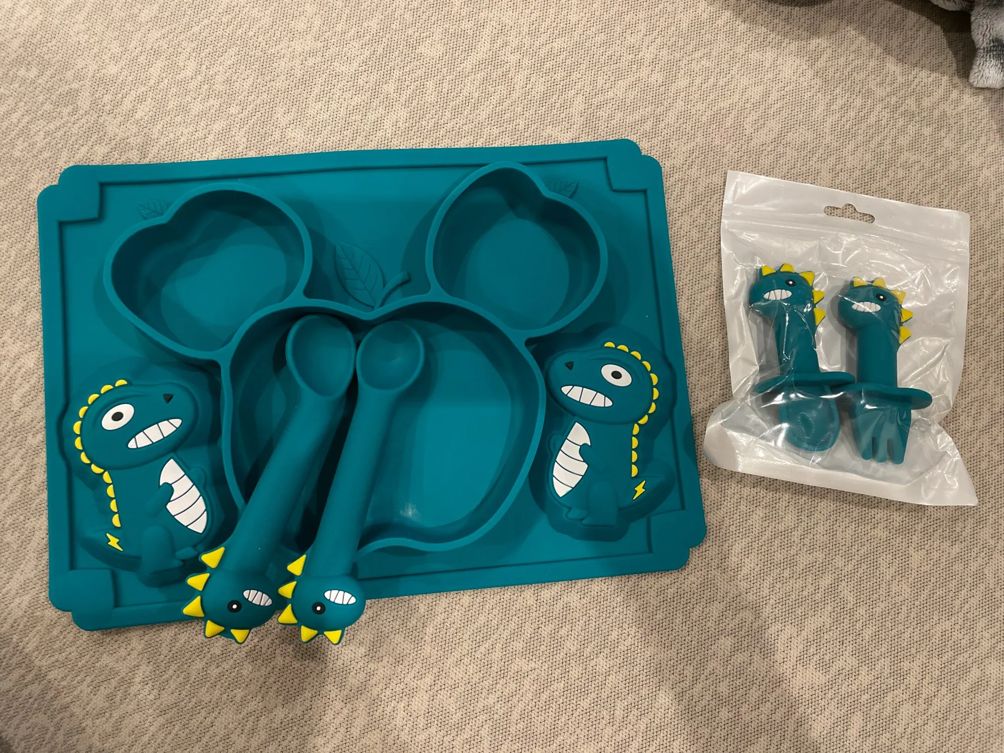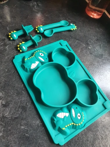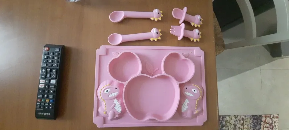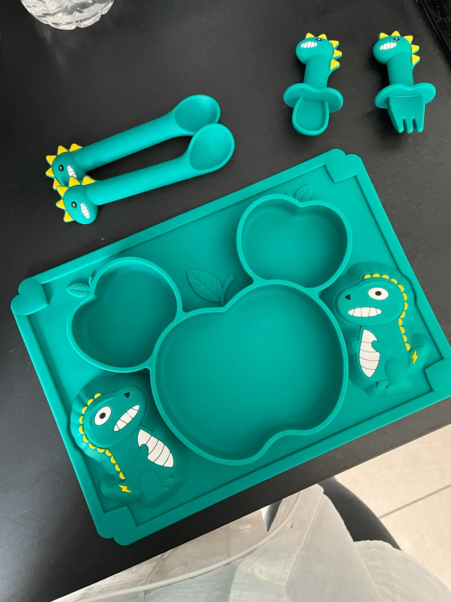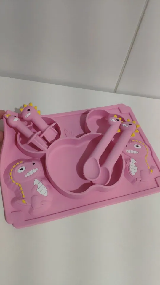 Quer chamar atenção do seu bebê durante a alimentação e fazer com que ele coma direitinho e ainda achar esse momento super divertido? Esse conjunto pratinho e talheres de silicone é perfeito para seu anjinho!
