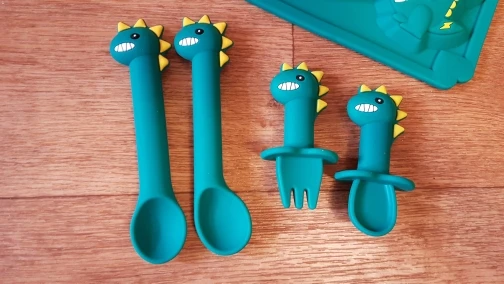 O kit talher de silicone com limitador foi projetado ergonomicamente para uso por bebês com mais de 6 meses. Seu design foi pensado especialmente para as mãozinhas pequenas, auxiliando o bebê a pegar os alimentos com facilidade. O limitador tem a função de impedir que a criança introduza profundamente o talher na boca.