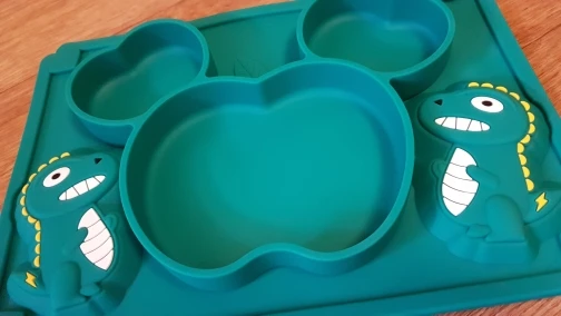 Feito de silicone de qualidade e de grau alimentício, é macio, flexível, durável e leve. Ótimo para sujar e fácil de limpar (o silicone é resistente a bactérias e antialérgico, o que os torna extremamente higiênicos). Disponível na cor verde e rosa.