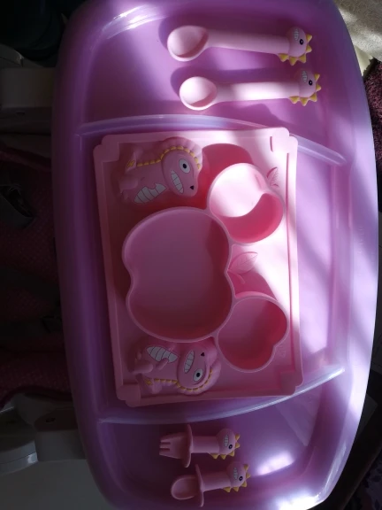 O prato aderiu na mesa. Na cadeirinha da minha filha não coube, ficou grande. No geral gostei bastante. Os espaços para a comida não é grande mas minha bebê não come tanto então ficou ótimo.