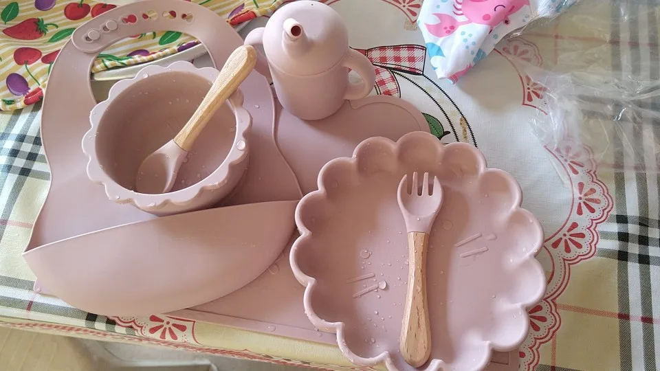 Composto por: 1 playmat (jogo americano) de silicone, 1 babador de silicone ajustável e com bolso, 1 tigela de silicone com ventosa, 1 prato de silicone com ventosa, 1 copo de silicone com alças e canudo lateral e 1 kit de talheres.