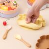 A colher e o garfo de silicone com cabo de madeira foram desenhados para ser ergonomicamente ajustáveis à mão da mamãe e do bebê. Leves de segurar, possuem suas pontas de silicone, essencial para evitar que o bebê se machuque ao usá-los. Medidas: 14cm x 3.5cm.