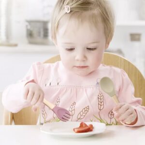 A colher e o garfo de silicone com cabo de madeira foram desenhada para ser ergonomicamente ajustável à mão da mamãe e do bebê. Leves de segurar, possuem suas pontas de silicone, essencial para evitar que o bebê se machuque ao usá-los.