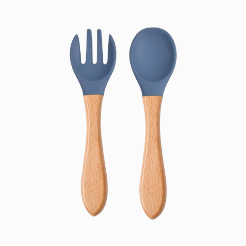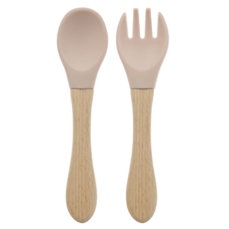 A colher e o garfo de silicone com cabo de madeira foram desenhada para ser ergonomicamente ajustável à mão da mamãe e do bebê. Leves de segurar, possuem suas pontas de silicone, essencial para evitar que o bebê se machuque ao usá-los.