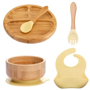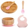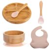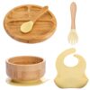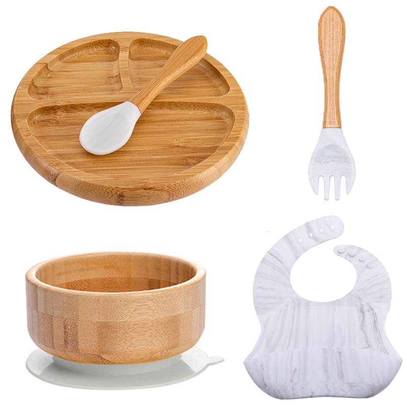 Olha que perfeição esse Kit Introdução Alimentar de Bambu com Babador de Silicone (5 peças)! Contém um lindo prato de bambu redondo com divisórias e ventosa antiderrapante para tornar a hora da refeição do seu bebê muito mais divertida. O pratinho é livre de substâncias tóxicas, super leve além do design fofo. Acompanha colher e garfo com cabo de madeira.