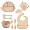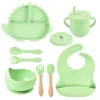 O silicone de alta qualidade, livre de substâncias nocivas, garante que cada refeição seja saudável e segura. Além disso, a praticidade na limpeza e o design funcional dos utensílios tornam o dia a dia dos pais mais fácil, permitindo que o foco esteja onde realmente importa: no bem-estar do bebê.