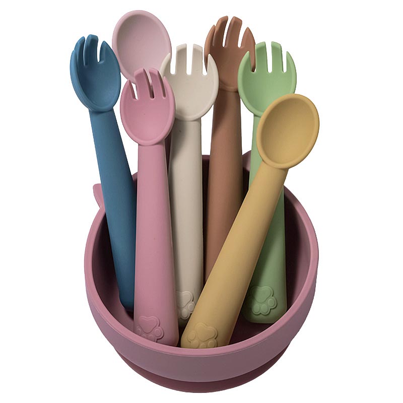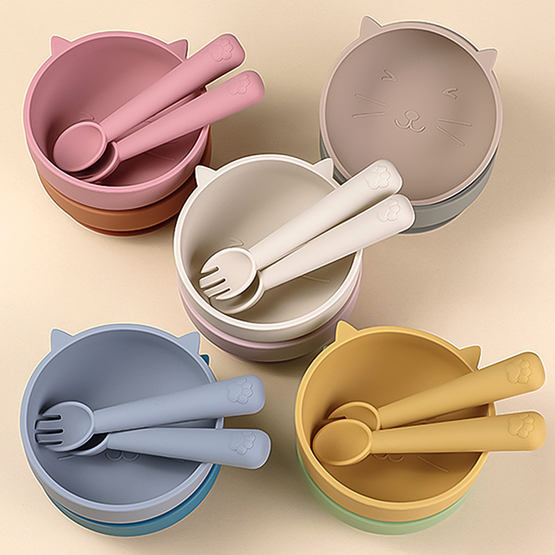 Seu bebê vai adorar se divertir na hora do papá com esse lindo kit gatinho que inclui: tigela de silicone com ventosa e talheres de silicone super macios, flexíveis e ergonômicos para facilitar a pega. Material de qualidade, livre de BPA e que pode ser levado ao micro-ondas e ser lavado na máquina de lavar louças.
