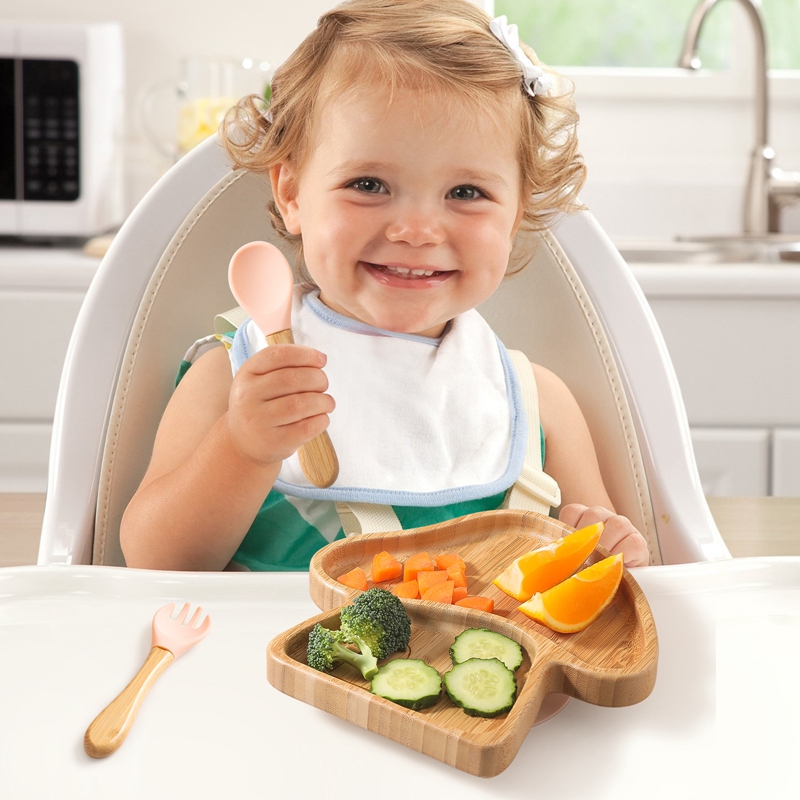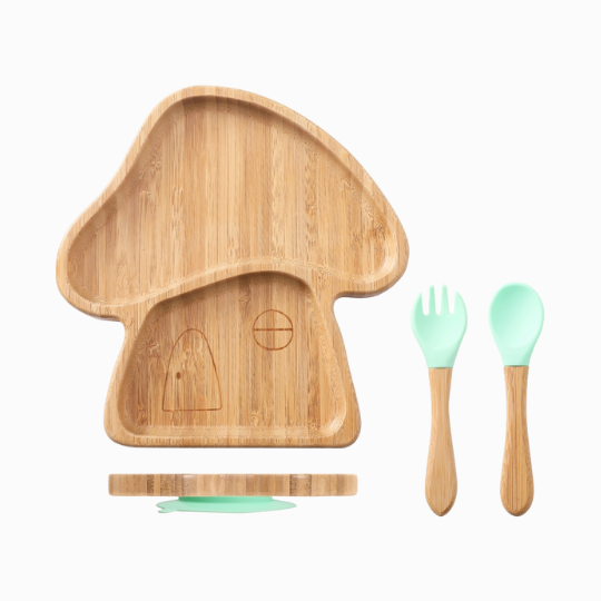 O Kit Infantil Prato de Bambu Cogumelo com Talheres (3 peças) inclui: