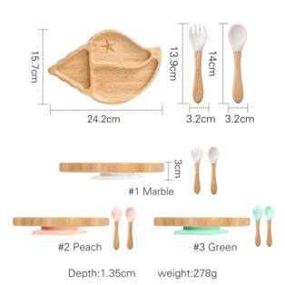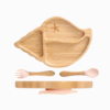 O Kit Infantil Prato de Bambu Concha e Talheres (3 peças) inclui: