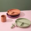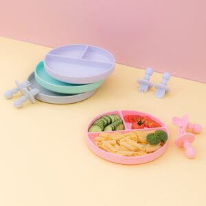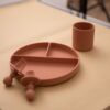 Lindo conjunto de silicone composto por prato e mini talheres! Ideal para acompanhar a introdução alimentar do seu baby proporcionando uma refeição muito mais alegre, prática e segura para ele.