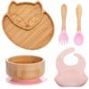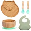 Olha que perfeição esse Kit Introdução Alimentar Raposa de Bambu com Babador de Silicone (5 peças)! Contém um lindo prato de bambu em formato de raposa com divisórias e ventosa antiderrapante para tornar a hora da refeição do seu bebê muito mais divertida. O pratinho é livre de substâncias tóxicas, super leve além do design fofo. Acompanha colher e garfo com cabo de madeira.