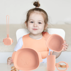 A hora da refeição é um momento super especial, e seja na hora do almoço, ou na hora do lanche, podemos ser criativas e transformar a hora do papá na hora preferida do bebê! E nada melhor do que contar com o Kit Silicone para Introdução Alimentar Doguinho (5 peças), com formato de cachorrinho, e que é composto por: prato para bebê com ventosa, tigela com ventosa, copo com canudo, mordedor de silicone e porta-chupeta de silicone.