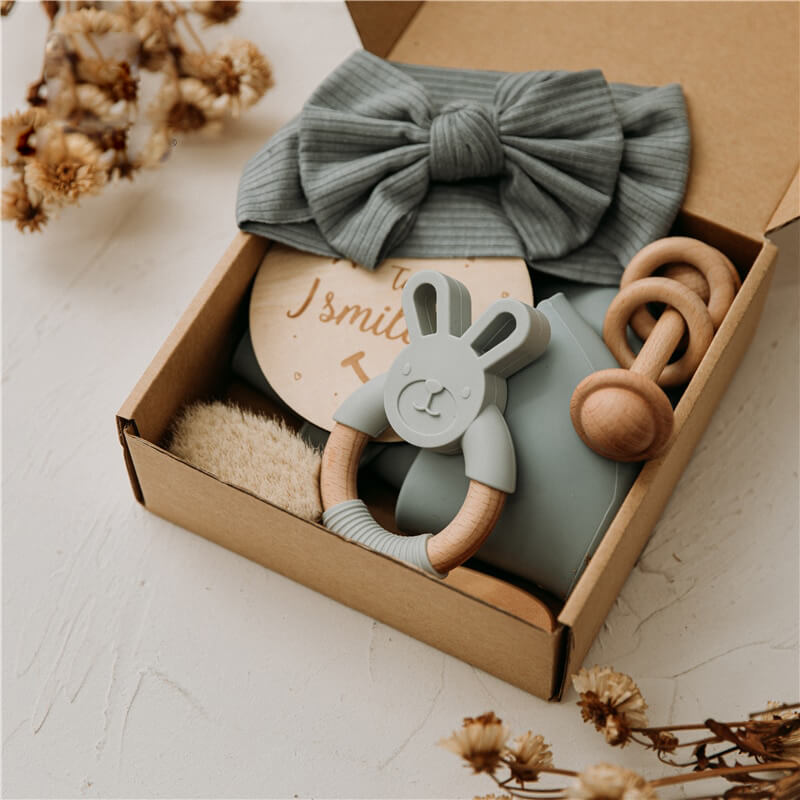 Os kits poderão incluir/variar entre os seguintes acessórios: swaddles, mordedores, tiaras, escovas, brinquedos e placas de boas-vindas.