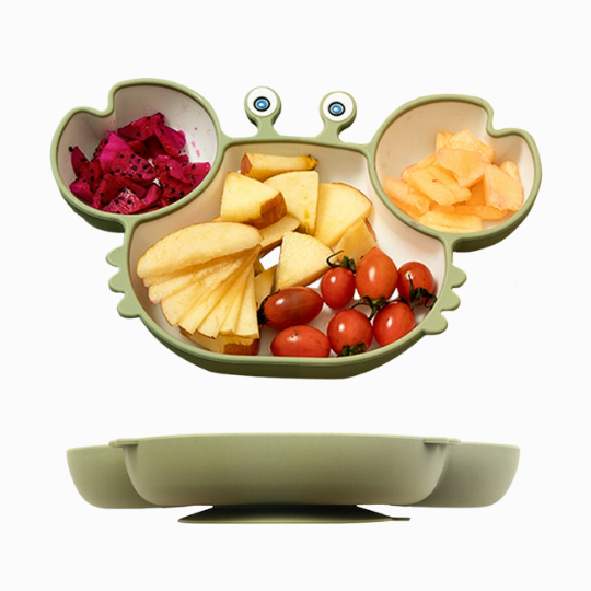 O Prato de Silicone Infantil Caranguejo possui três regiões que ajudarão o bebê a identificar cada alimento de forma separada, trazendo uma experiência de degustação segmentada. Possui poderosa ventosa de sucção que garante uma ótima fixação em superfícies limpas e lisas.