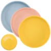 Fácil de limpar e compatível com microondas e lava-louças, esse prato de silicone redondo oferece conveniência no dia a dia.