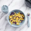 A superfície ampla e sem divisórias do prato de silicone redondo incentiva a experimentação alimentar, tornando as refeições um momento de aprendizado.