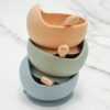 A Tigela de Silicone com Ventosa Modelo Padrão (bowl de silicone) foi desenvolvida para evitar que o alimento sólido ou líquido derrame, graças ao seu design que possui um dos lados mais alto que o outro e a sua ventosa de sucção, que garante sustentabilidade em superfícies lisas e limpas. Medida: 12cm de diâmetro x 8.5cm de altura.