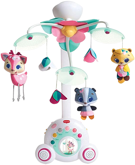 A Fisher Price também possui em seu portfólio esse modelo de móbile musical de berço que é sucesso entre os consumidores da marca.Ele é um móbile completo, com encaixe para berço, bichinhos de pelúcia, diversas canções de ninar e projetor de mesa que ajuda a acalmar bebês e crianças mais velhas.