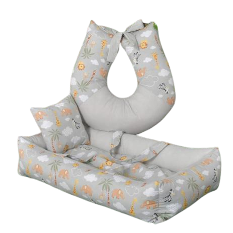 8. Ninho Redutor De Berço Safari + Almofada Amamentação 3 Peças